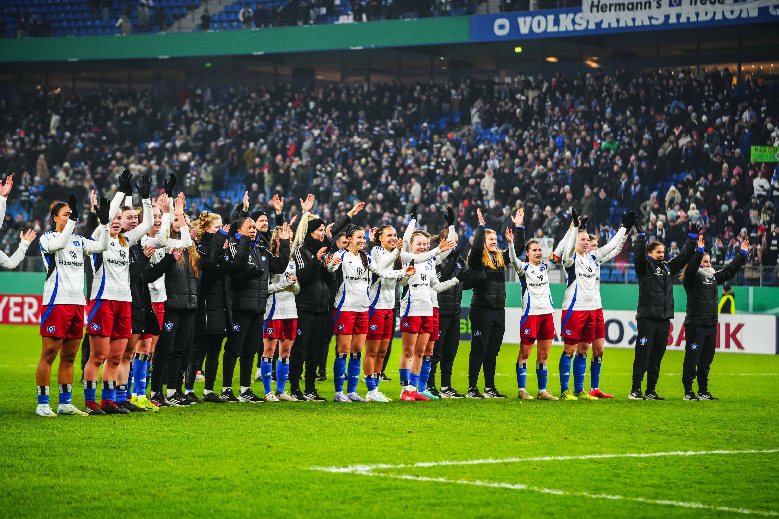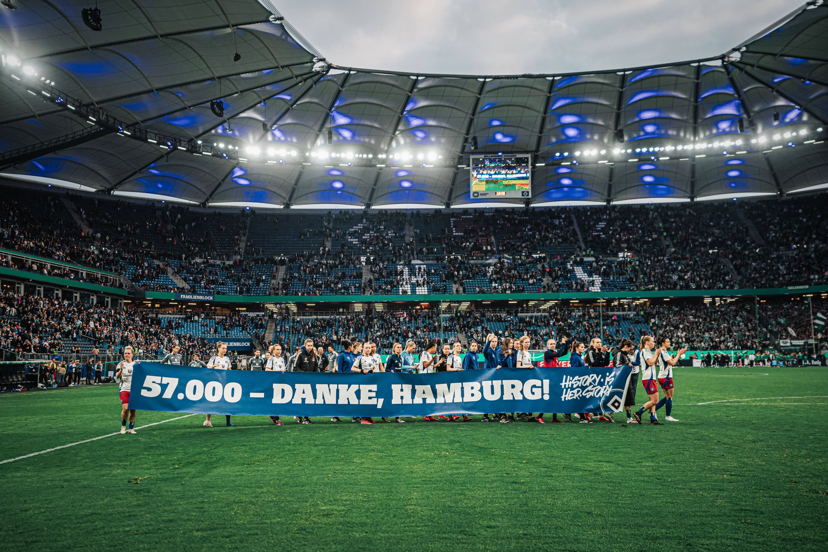 The HSV women's team will be playing in the first Bundesliga next season, and their DFB Cup semi-final appearance has ensured a record crowd at the Volksparkstadion.